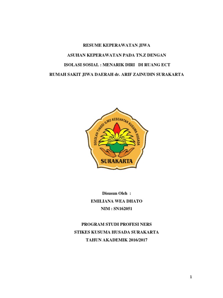 12+ Resume Keperawatan Jiwa Isolasi Sosial. Contoh resume keperawatan jiwa by luthfia_farida. Menarik diri pada diagnosa medis skizofrenia.