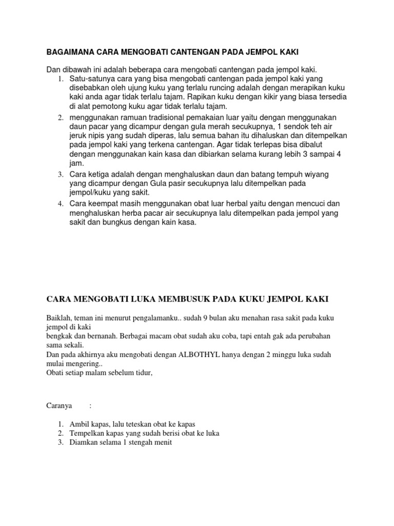 Hi sobat honestdocs, kali ini saya akan membahas tentang cantengan pada jempol kaki, sebelumnya topik tentang cantengan ini pernah saya tulis pada. Nah, salah satu cara mengobati cantengan yang bisa dilakukan di rumah adalah. Hi sobat honestdocs, kali ini saya akan membahas tentang cantengan pada jempol kaki, sebelumnya topik tentang cantengan ini pernah saya tulis pada. Cara pencegahan sebelum membeli obat cantengan di apotik.