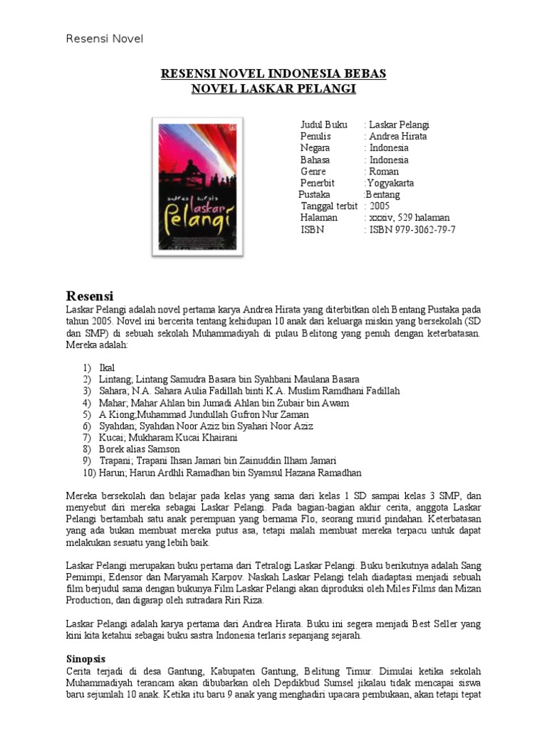 Contoh resensi novel laskar pelangi beserta kelebihan dan kekurangannya.