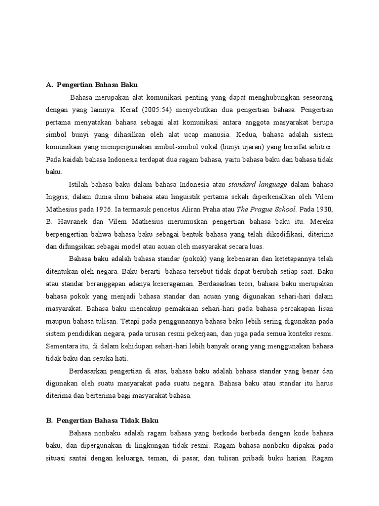 Cara termudah membedakan apakah sebuah kata dapat dikatakan baku atau tidak adalah. Pengertian kata baku dan tidak baku. Istilah bahasa baku dalam bahasa indonesia atau standard language dalam bahasa inggris dalam dunia ilmu bahasa atau linguistik pertama sekali diperkenalkan oleh vilem mathesius pada 1926. Modern yakni kamus besar bahasa indonesia dan tata bahasa baku bahasa indonesia.