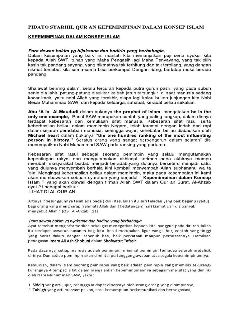 Download Resume Kepemimpinan Dalam Islam. Bayu utomo 13312002 rizky efendi 13312014 restu wahyuni 13312022 laili riziiq m 13312025 septian adis 13312027 universitas muhammadiyah gresik fakultas ekonomi. Kepemimpinan tidak dapat dipisahkan dari gaya, perilaku, dan kedudukan pemimpin bersangkutan dan interaksinya dengan para.