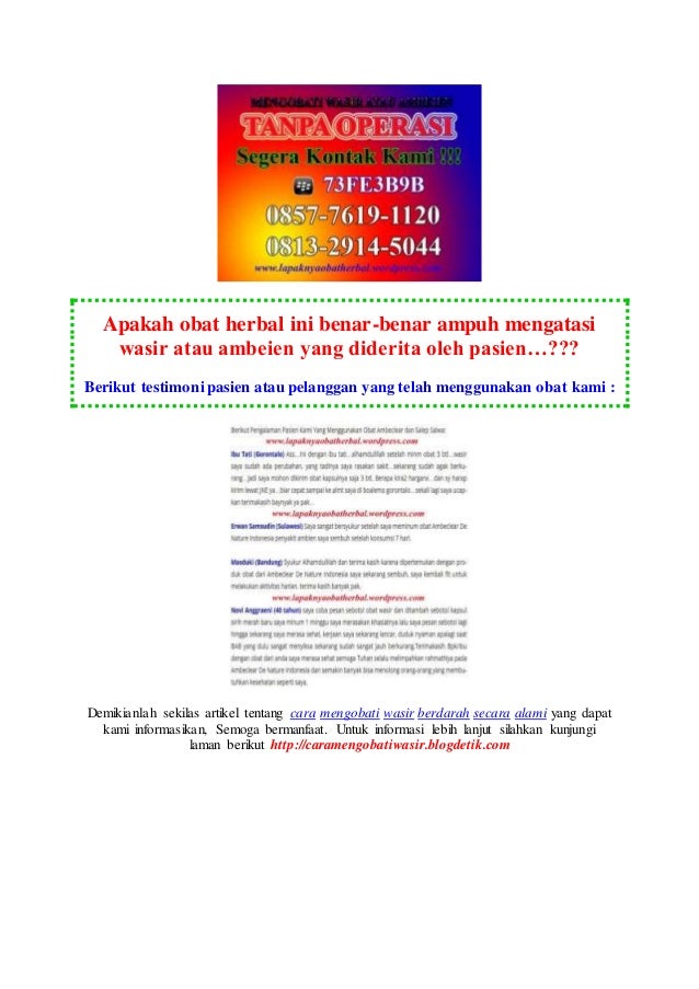 Cara mengobati bab berdarah dan sakit karena wasir untuk konsultasi dan pemesanan hubungi call center kami.
