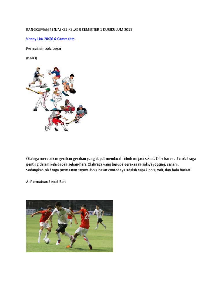 Mengontrol bola merupakan salah satu teknik dalam permainan sepakbola yang digunakan untuk menghentikan datangnya bola dengan cara menggunakan salah satu anggota badan (kaki,paha,badan) tujuan mengontrol bola adalah untuk. Amerika serikat dapat dikatakan sebagai negara penggemar bola basket nomor satu. Permainan bola basket diciptakan oleh james a.naismith, pada tahun 1891 di ymca (young man christian association) rangkuman materi penjas kelas vii bab 9 pendidikan luar kelas.